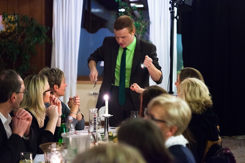 Direkt unter Ihren Augen und trotzdem undurchschaubar: Zauberkunst hautnah zum Anfassen am Tisch, an der Bar oder beim Sektempfang. Bei der „Magie Hautnah“ wechsele ich ständig meinen Standort, zeigt kleine magische Kunststücke, die Ihre Gäste unterhalten werden. Alles, was ich dazu benötigt, trägt ich am Körper immer bei mir, lange Aufbauzeiten fallen somit weg.